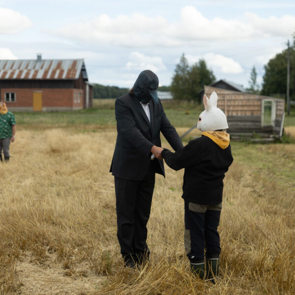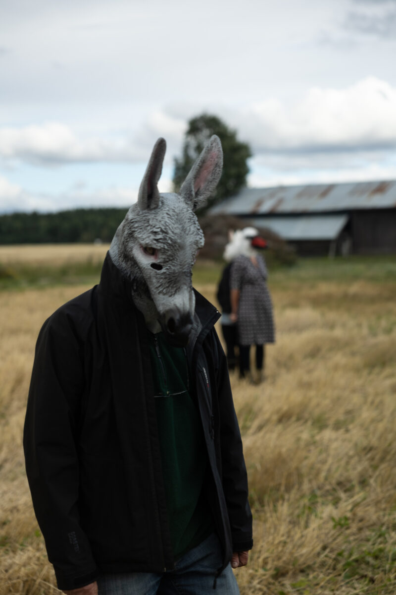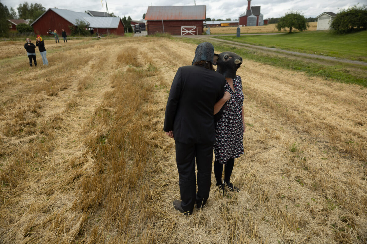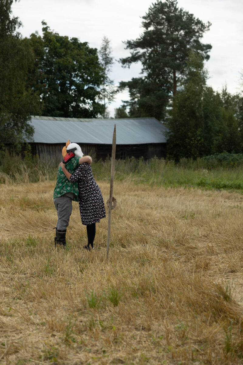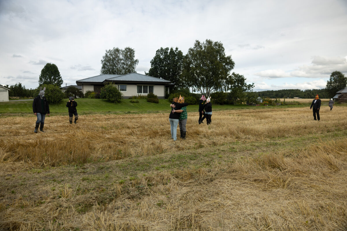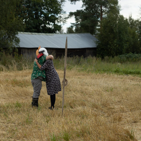 Scheibe & Güntzel bjöd in grannar och besökare till en övergångsrit på stubbåkern vid Abrams, baserad på berättelserna om sädesspöket. Med djurmasker utförde deltagarna enkla handlingar sida vid sida – en kollektiv gest av blidkande och uppskattning gentemot fältet, året och det gemensamma arbetet.