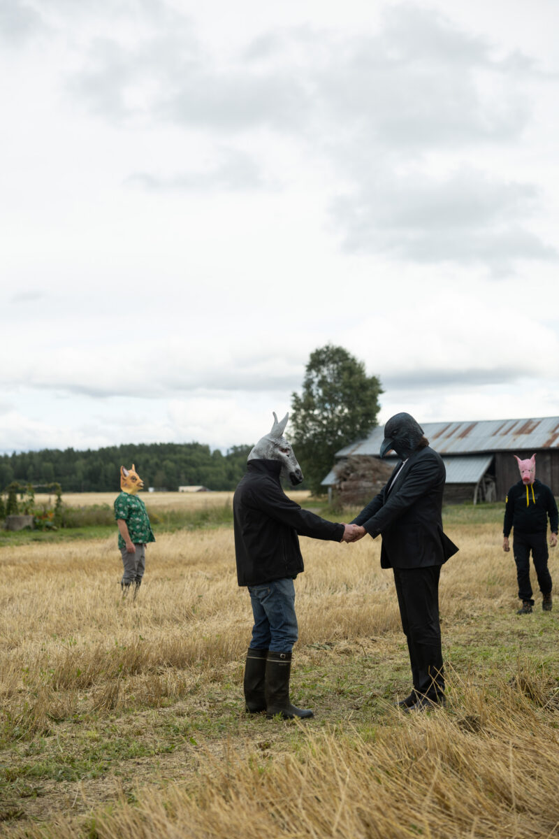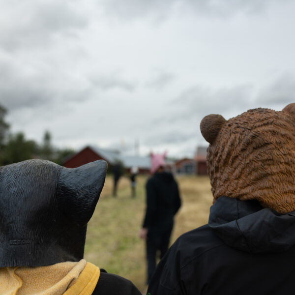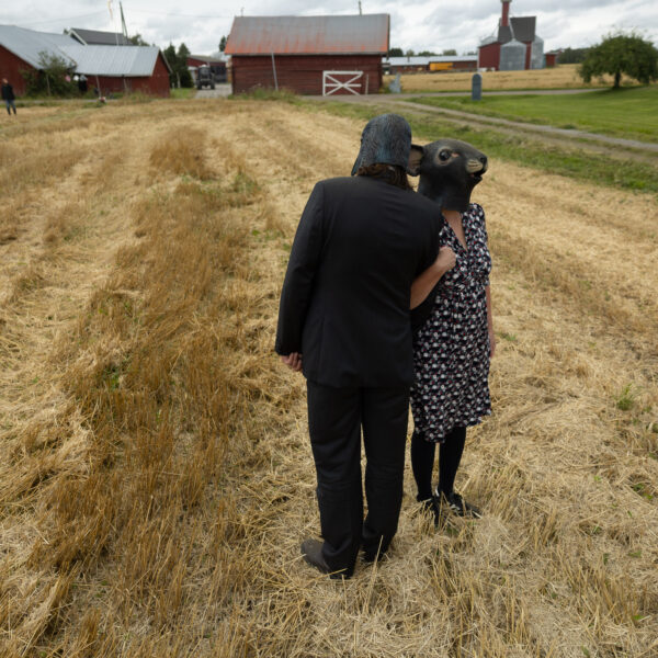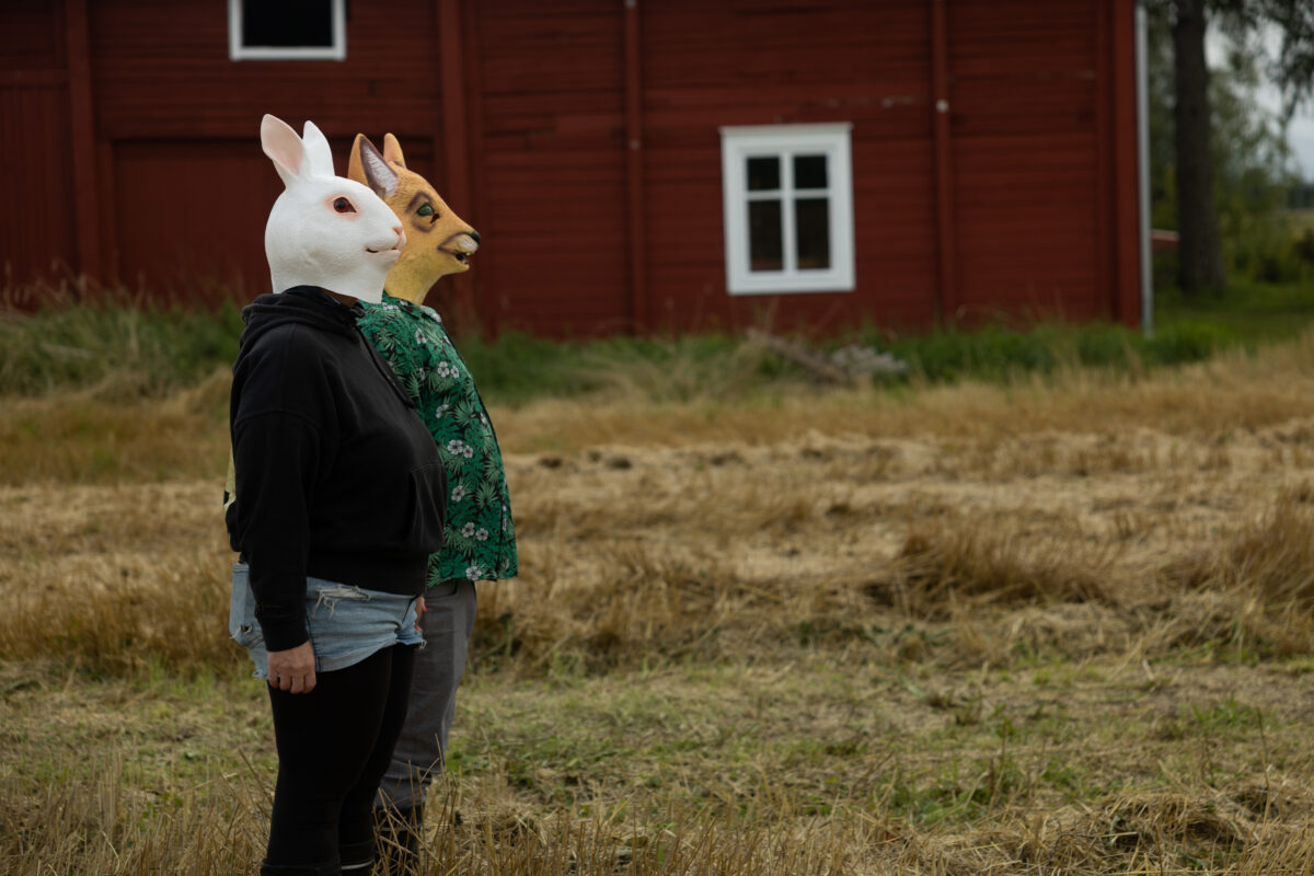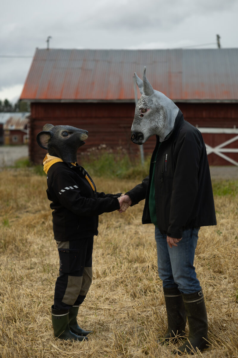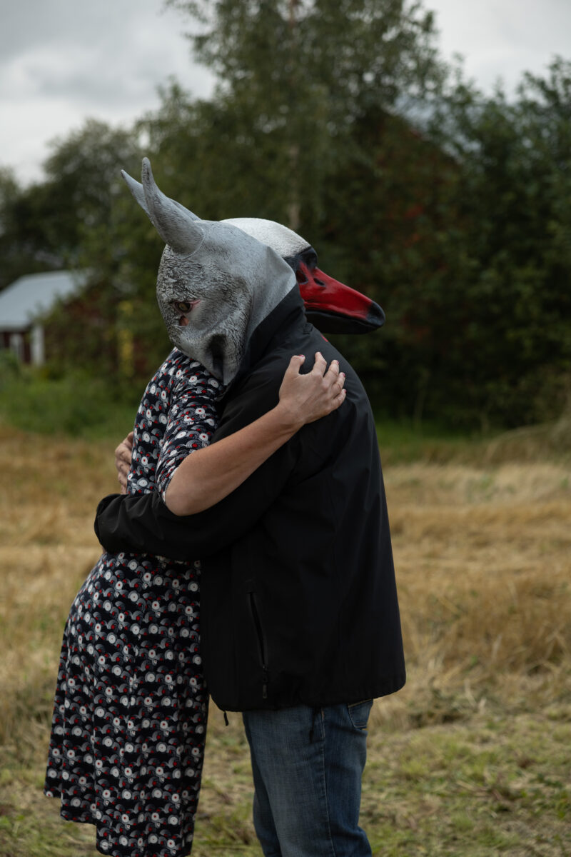 Scheibe & Güntzel bjöd in grannar och besökare till en övergångsrit på stubbåkern vid Abrams, baserad på berättelserna om sädesspöket. Med djurmasker utförde deltagarna enkla handlingar sida vid sida – en kollektiv gest av blidkande och uppskattning gentemot fältet, året och det gemensamma arbetet.