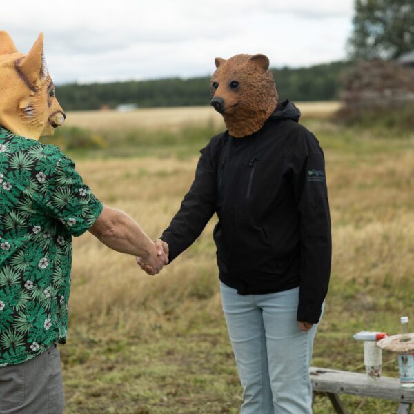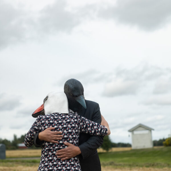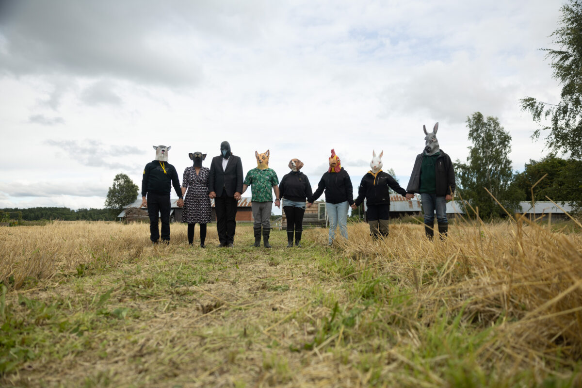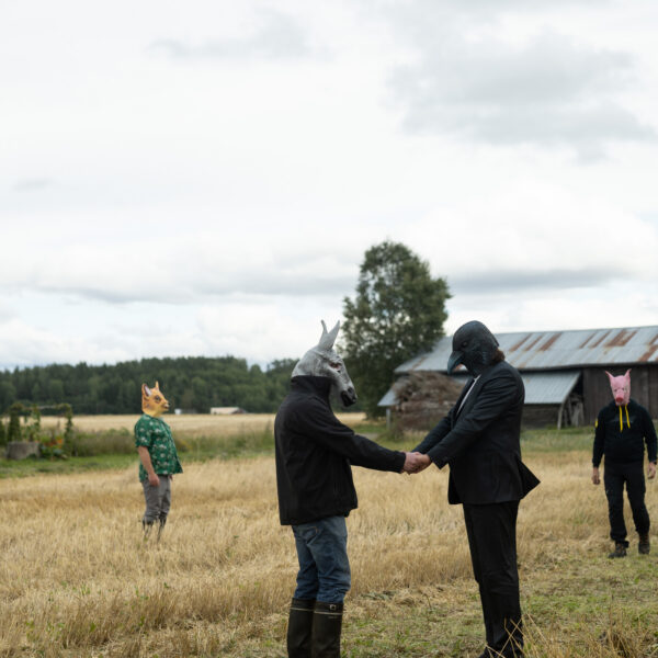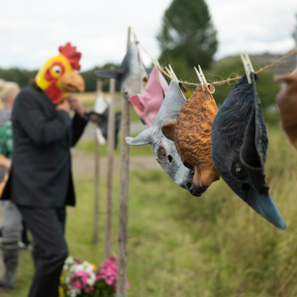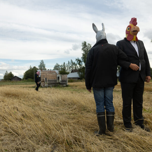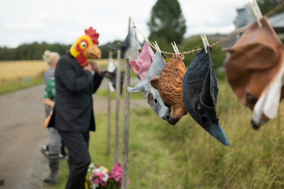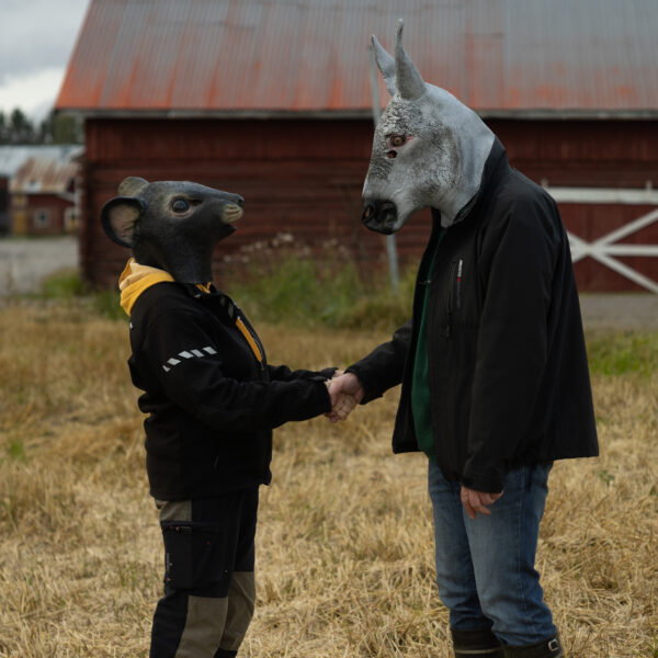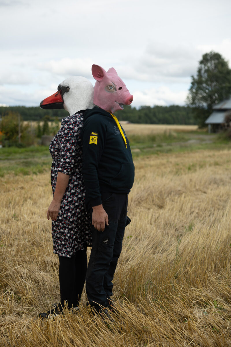 Scheibe & Güntzel bjöd in grannar och besökare till en övergångsrit på stubbåkern vid Abrams, baserad på berättelserna om sädesspöket. Med djurmasker utförde deltagarna enkla handlingar sida vid sida – en kollektiv gest av blidkande och uppskattning gentemot fältet, året och det gemensamma arbetet.