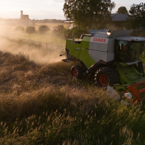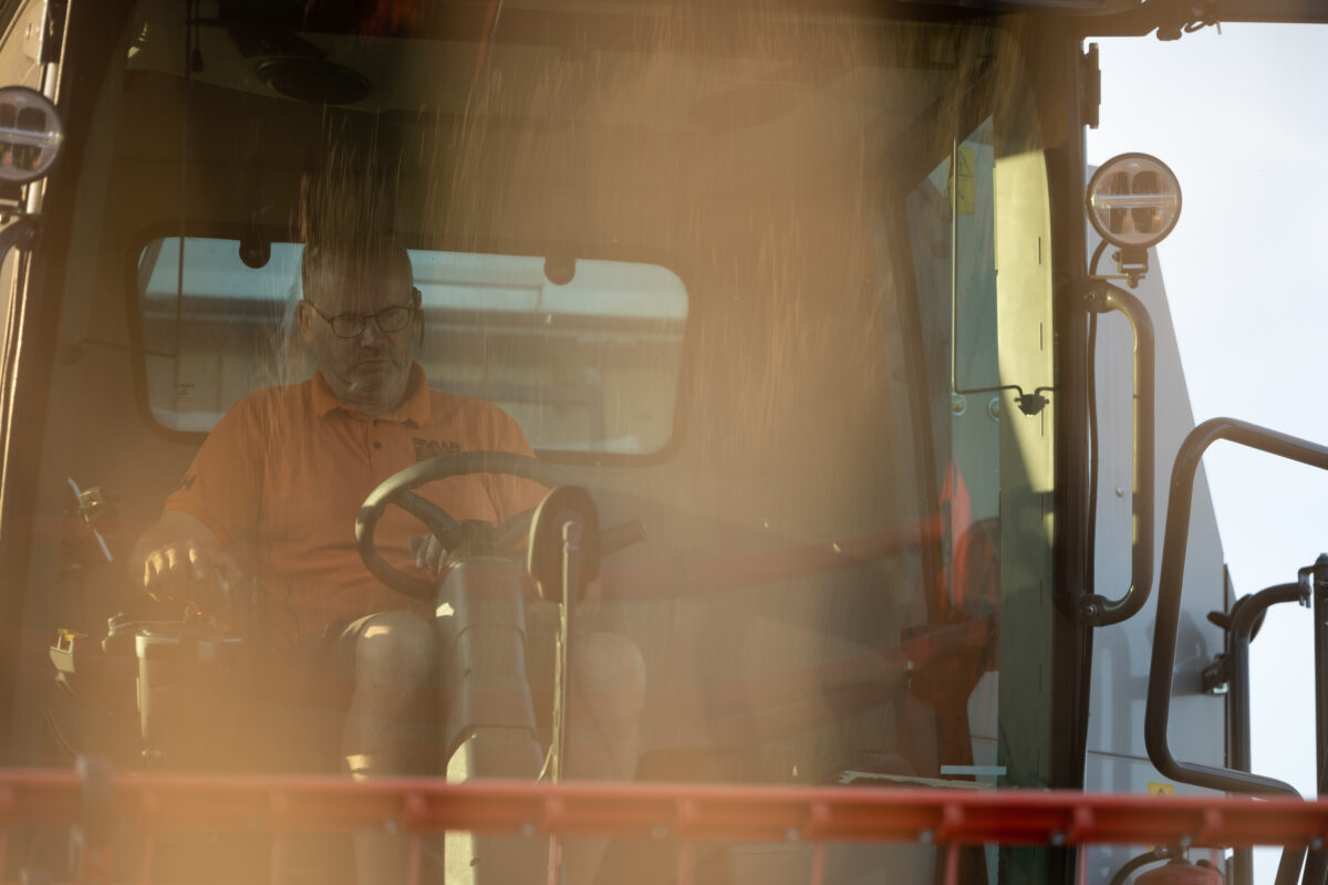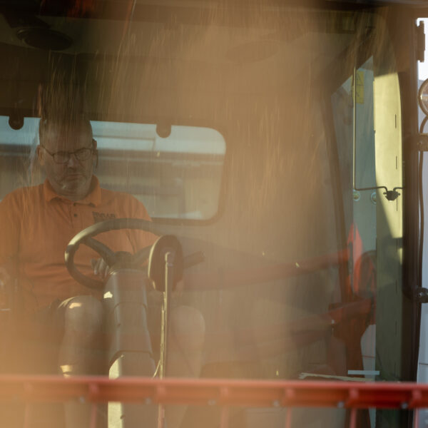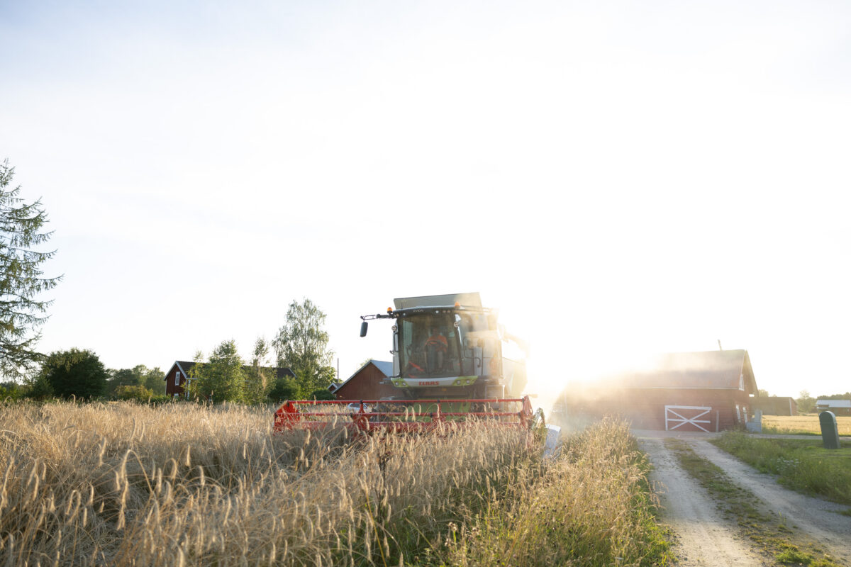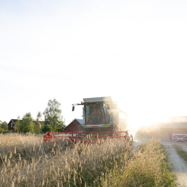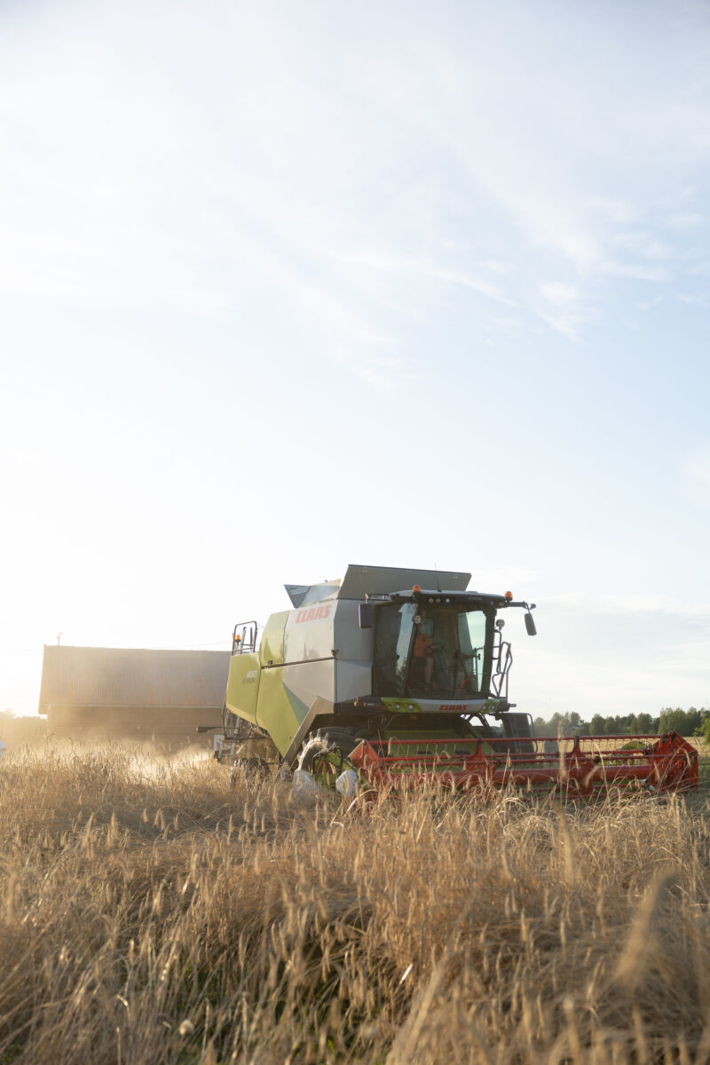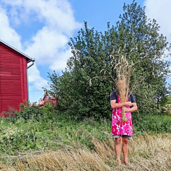 På grund av de varma temperaturerna mognade rågen alltför snabbt och var tvungen att skördas tidigare än beräknat. Pelle Grannas – vår vägledare i alla livets skeden – anlände med sin splitternya skördetröska. Resultat av skörden: 700 kilo råg.
